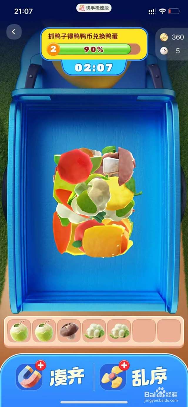 第二步:遇到有鸭子的水果,不用管它,直到有三个相同的,快速点击消除,免得影响速度。