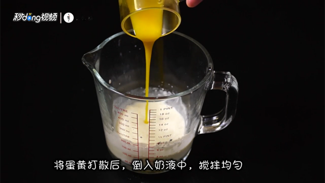 [图]3/5将蛋黄打散后倒入奶液中,搅拌均匀。