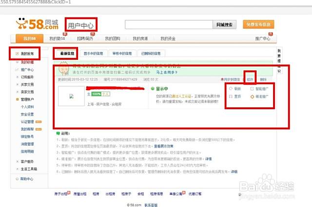 1/6分步阅读这边已58同城为例,首页打开网站,登陆账号,进入个人中心;如果没有账号,就直接注册一个,很方便的;