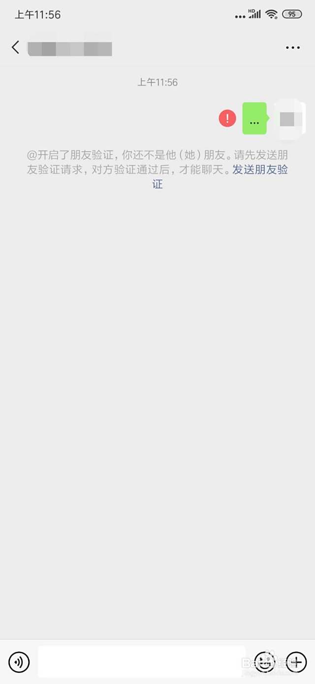 4、总结:你删除对方好友后,对方不会知道,在对方没发信息给你之前,你都可以随便加回来,并且对方毫不知情,如果对方有发信息给你后,他那边就会提示”“对方开启朋友验证,你还不是他(她)好友“