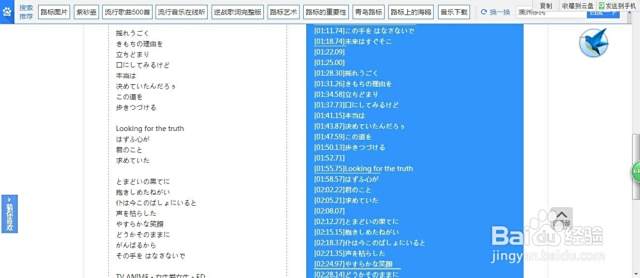 我以路标歌曲为例子,现在网页上搜索路标的歌词,最好是搜到带有时间轴的,这样积分会更高一些。然后选择复制歌词或者下载歌曲文件,根据自己搜到的实际情况为准。