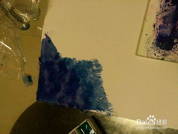 然后画完刚刚的一角笔不要洗 再加紫色的 再刚刚的一角上点式的画