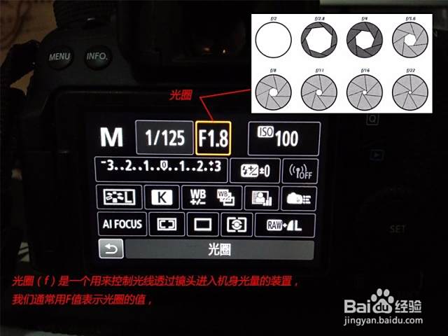 光圈(f)是一个用来控制光线透过镜头进入机身光量的装置,我们通常用F值表示光圈的值,