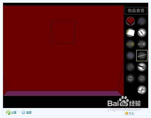 一面空墙的线索:电池。在场景中唯独这块墙找不到任何的明显线索,于是我特意留心了一下,在各个角落都细细点击,终于让我发现在柱子的左下角有个场景的转换,会找到隐性线索:电池。