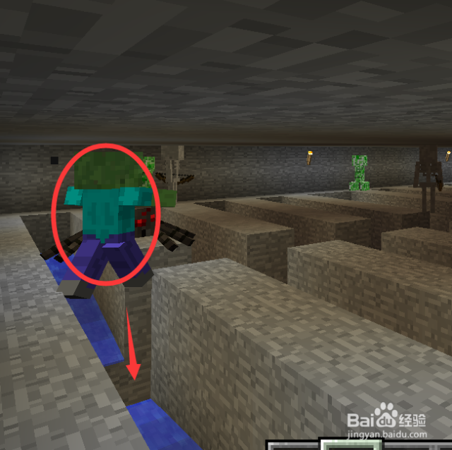 [图]17/20以上刷怪塔就完成了,下面我们看看具体的效果吧。这是刷怪塔刷出来的怪物。刷怪塔内部会在所有过道中刷新出来,刷新出来的怪物是没得去的,走几步就会掉到水里。而掉到水里就一定会被冲下来摔死。两格高的高度是防止怪物一格高能再跳上来。两格高怪物掉进水里是必死的。
