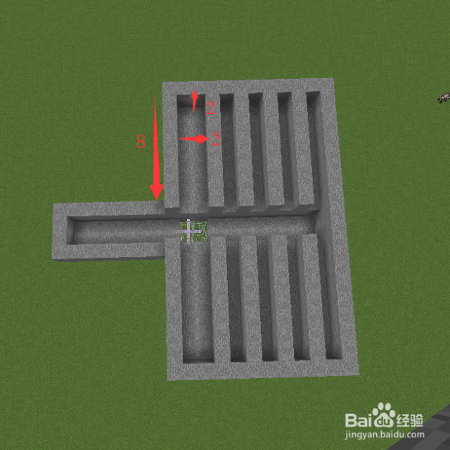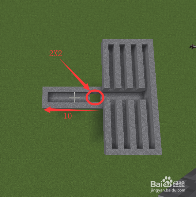 [图]6/20在横向的尽头空出一个2X2的区域,并且两边向外延伸10格围起来,中间区域为8格的距离。
