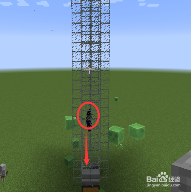 1/20分步阅读首先我们用任意方块搭建一个高28格的柱子。这样保证怪物一定会被摔死。