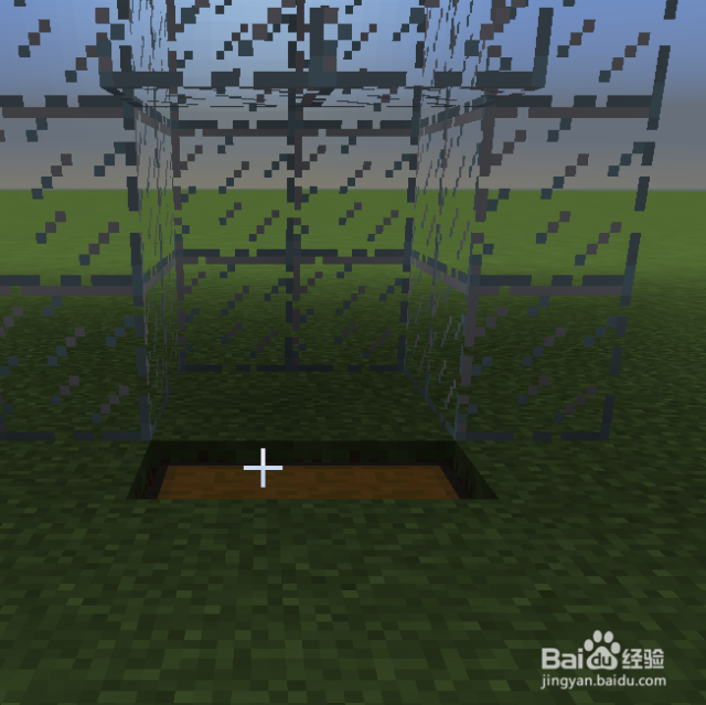 [图]7/20将2X2区域向下的边缘都用石头延伸下去。这里为了大家看的方便我用的玻璃。游戏中用石头即可。