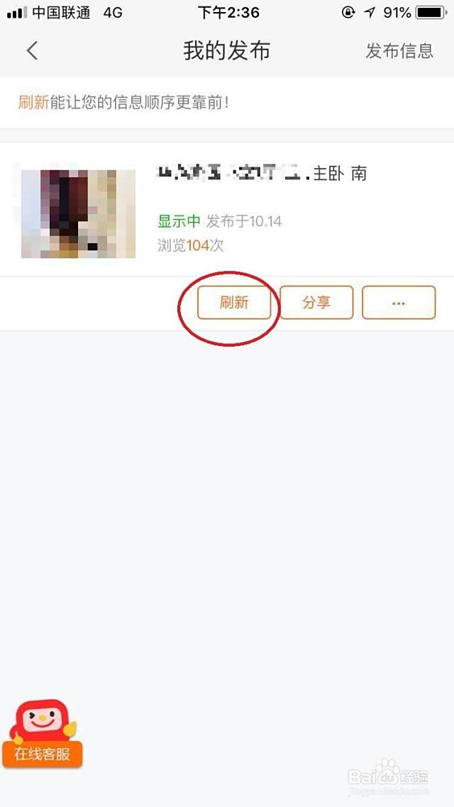 [图]2/41.刷新法:点击“刷新”,里面会出现两种刷新方法,“预约刷新”和“立即刷新”,预约刷新需要花钱,土豪随意;立即刷新只有5次免费刷新机会。需要注意的是,当浏览量大于500之后,免费刷新机会就没有了,这个比较坑。基本上我为了省钱都重新发一遍帖子。