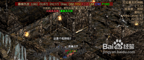 ①大陵寝,位于第一幕血鸟埋骨之地那里,缺点是怪物数量过少,地形不够宽敞,但是怪很弱,别的85级场景刷不动的可以试试这里。(见第一幅图,从hm补丁的小地图显示怪物功能看,怪物分布很稀疏,图片是我自己在游戏中截的)