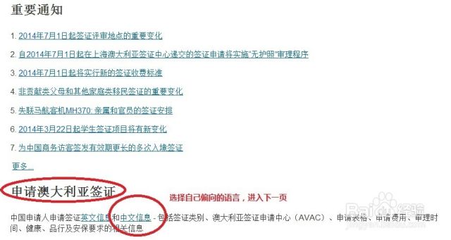 以澳洲个人旅游签证为例,百度搜索“澳大利亚驻华总领事馆”,点击搜索结果进入领事馆主页,如果不习惯英文,选择左侧“中文”可以进行语言切换。然后左侧选择“赴澳旅行”,并在出现的内容页中,选择链接“签证或出行许可”,进入后续页面后在第二项“申请澳大利亚签证”项目下选择“中文信息”,进入后续页面后在签证类别项目下选择“访客签证”,进入后续页面。