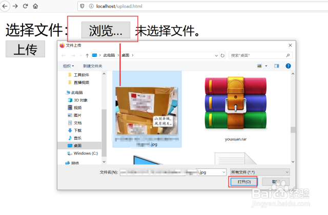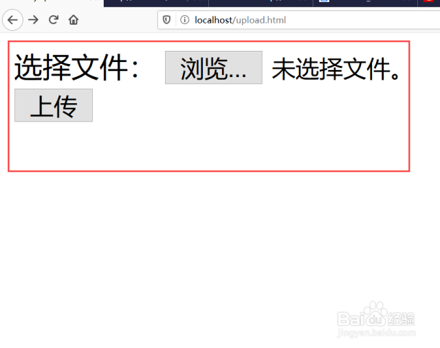1.打开浏览器,地址栏输入:http://localhost/upload.html,并回车;