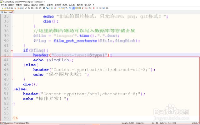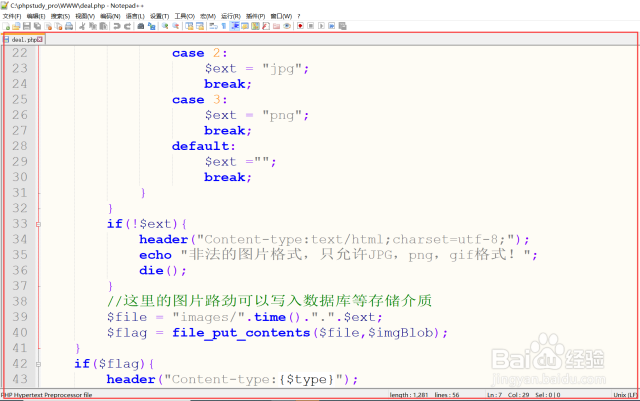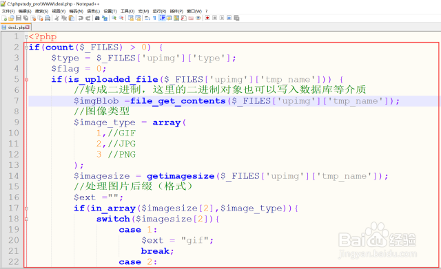 if(count($_FILES) > 0) { $type = $_FILES['upimg']['type']; $flag = 0; if(is_uploaded_file($_FILES['upimg']['tmp_name'])) { //转成二进制,这里的二进制对象也可以写入数据库等介质 $imgBlob =file_get_contents($_FILES['upimg']['tmp_name']); //图像类型$image_type = array( 1,//GIF 2,//JPG 3 //PNG);$imagesize = getimagesize($_FILES['upimg']['tmp_name']);//处理图片后缀(格式)$ext ="";if(in_array($imagesize[2],$image_type)){ switch($imagesize[2]){case 1: $ext = "gif"; break;case 2: $ext = "jpg"; break;case 3: $ext = "png"; break;default: $ext =""; break; }}if(!$ext){ header("Content-type:text/html;charset=utf-8;"); echo "非法的图片格式,只允许JPG,png,gif格式!"; die();}//这里的图片路劲可以写入数据库等存储介质$file = "images/".time().".".$ext;$flag = file_put_contents($file,$imgBlob); } if($flag){header("Content-type:{$type}");echo ($imgBlob); }else{header("Content-type:text/html;charset=utf-8;");echo "保存图片失败!"; } die();}else{ header("Content-type:text/html;charset=utf-8;"); echo "操作异常!";}?>