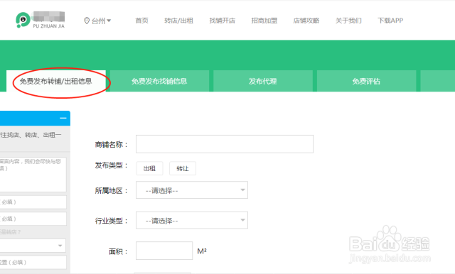 1/5分步阅读百度搜台州商铺出租转让,如下图我用红色线圈出来的两个平台都可以发布转让、出租、找店的信息