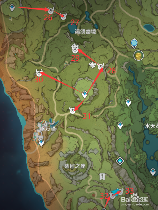 30喀万驿北部:高塔透镜,要雷元素攻击激化透镜。