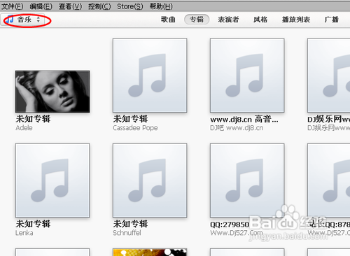 点击itunes软件中左上边“音乐”按钮