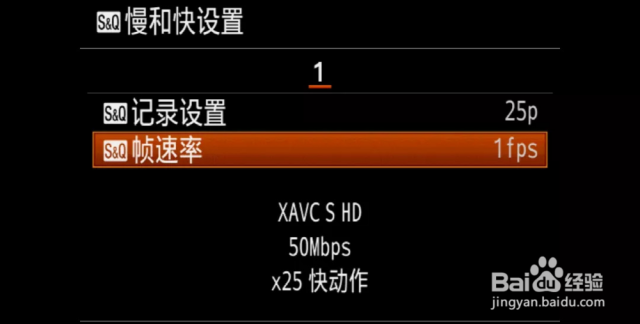 进入S&Q帧速率,可以看到帧速率从100fps到1fps选择,进入记录设置,可以选择25P或50P。