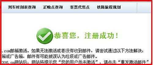 恭喜注册成功,这时打开注册时填写的邮箱,去邮箱激活就可以订票了