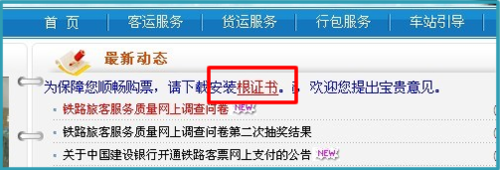 订票时要用网上银行,为保障顺畅购票,就要下载安装根证书先,点击“根证书”下载安装即可。