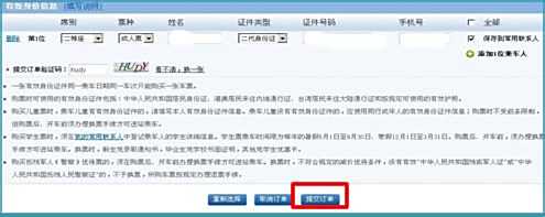 填写好联系人信息之后“提交订单”,节前买票前先把联系人信息全部填好,可以加快买票的速度哦
