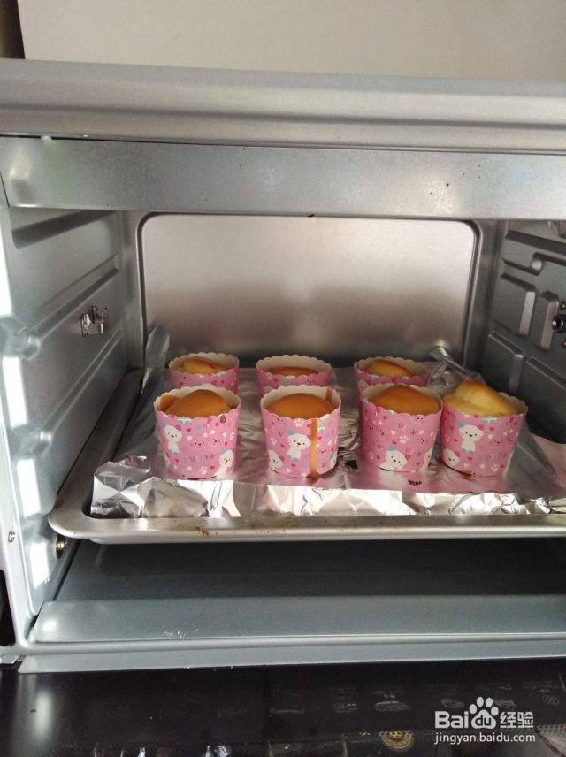 [图]6/6把纸杯蛋糕放进烤箱,定时为四十分钟。烤的时候可以看到蛋糕一点点的鼓起来,四十分钟后,美味的纸杯蛋糕就坐好啦,可以开吃啦