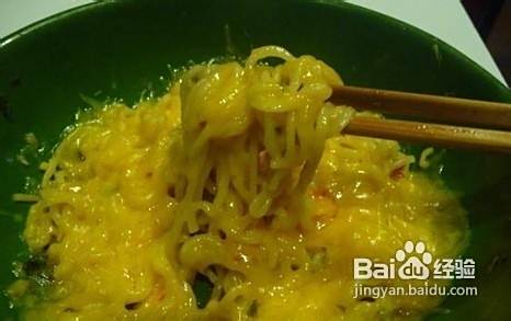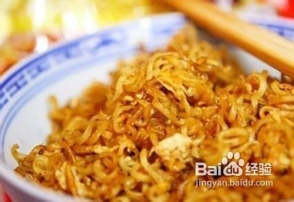 用料:方便面、鸡蛋做法:1、先煮开面, 然后捞出来过一下冷水2、下油炒, 快好的时候, 打个鸡蛋下去, 混在面里面, 尽量让每条面都粘到鸡蛋, 然后放调味料3、最后来那么一点醋和包尾油,正点~