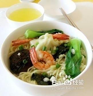 主料: 虾 馄饨 面条辅料: 油菜,高汤材料:方便面(用龙须面最好,家里正好有方便面我就用了),馄饨(自己包也好,买现成也好),大虾,油菜,高汤(骨头汤、鸡汤均可),紫菜,香菇,香葱,海米。调料:盐,鸡粉,胡椒粉,香油做法:1.将大虾去皮、去头、去除肠线,保留尾部,这样做出来比较好看,将处理好的虾洗净;油菜取油菜心洗净;香菇泡发,有心情的可以做个十字花刀,让即将出现在他面前的这碗面更加漂亮;香葱洗净后切末。2.材料都准备好后,取来汤锅,放入适量清水,烧开,然后下入面条和馄饨,煮熟后捞出,我用的是方便面,稍煮一下就可以先捞出了,煮好的面条也可以过一下水。3.如果有高汤的话,味道会更好,现在也就可以另起锅烧开高汤了,如果没有高汤就用刚才煮面的汤就可以了,烧开后放入虾仁,再加入香菇,海米,紫菜,油菜,再加入胡椒粉,盐,鸡粉,香油调味,最后将馄饨和面条放入调好味的汤中,撒上香葱末即可