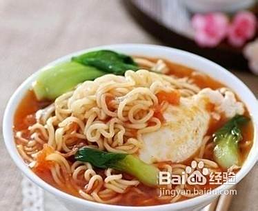 材料:方便面一包,番茄2个,小油菜100g,鸡蛋一个。花生油少许,葱段,姜片,盐少许做法:1.番茄切丁,小油菜洗净。锅里热油,加葱姜炝锅。2.倒入番茄丁,翻炒均匀后小火熬至软烂。3.倒入开水。(煮面,可多放一些)打入一个荷包蛋,中小火煮至蛋黄差不多凝固,把蛋捞出放入碗中。4.锅里放入面饼和调料拌匀。盖盖煮6-8分钟。然后放入小油菜调入少许盐再煮一分钟关火。5.放鸡蛋的碗里倒入醋和香油,然后把煮好的面倒入即可