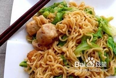材料:方便面、红萝卜、青椒、木耳、葱、蒜步骤:1.找一包方便面,方便面不一定要选贵的,华丰三鲜伊面是我小时候最爱吃的,面不容易断,物美价廉2.把面放在一个碗里,用开水冲泡,大约一分钟,将碗里的水倒掉,趁着还有热气,盖上盖子捂着3.把红萝卜、青椒、木耳切丝,同时准备葱末、蒜片4.开始炒配菜,先将油烧红,放入葱末蒜片爆炒,炒出香味后放入红萝卜丝和青椒丝,炒至半熟放调味料。直接把方便面里的配料包放进去就可以,不用再加任何调味料。之后放入木耳继续翻炒。5.取出闷在碗里的方便面,这时候的面应该是半软的,但是不会被泡到彻底散开。把面放在炒好的菜上面,盖上锅盖,关到最小的火(以免糊锅),靠热蒸汽把面再闷软一点。大概两三分钟后,再放一些小虾皮(为了增加鲜味),把火调大,开始翻炒,不要翻炒的太厉害,面容易断成一节一节。35/43安井鱼丸方便面