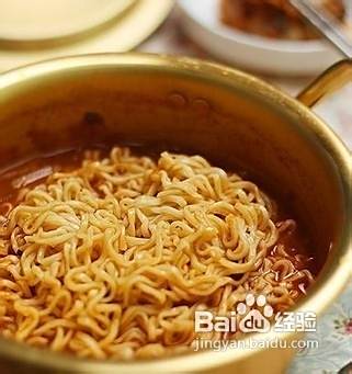用料:面饼2块(超市有售,面饼式的煮面),自制辣白菜少许,韩国辣酱一勺调料:芝麻油,牛肉粉(没有就用少许鸡精)做法:1)金锅洗干净,加入少许芝麻油烧热2)加入切碎的辣白菜炒香(辣白菜不要太多过酸也不好吃,少许带味)3)加入水煮开,加上一勺的韩国辣椒酱和少许牛肉粉调味4)加入面饼煮熟即可享用。超好吃的,试试吧~~
