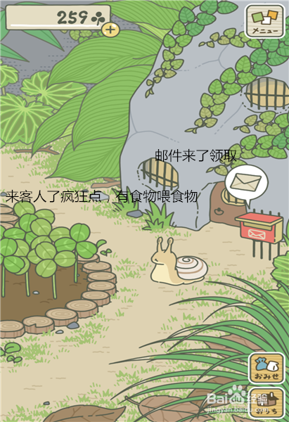[图]2/20当我们发现庭院里有蜗牛等青蛙的好朋友时,我们要疯狂的点他,因为有的时候会给我们带来好东西,即便没有,我们也要给他吃饱喝足,不能怠慢了来宾哦。