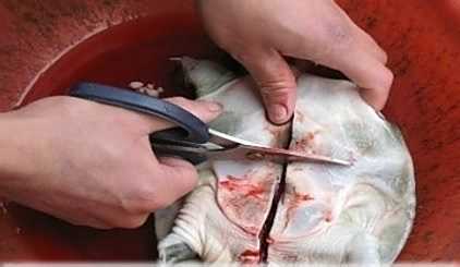 甲鱼不再动弹可放心剖剪脖子和政雁头。