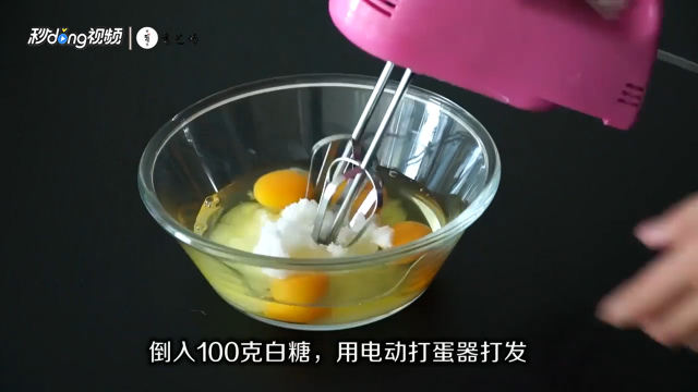 [图]2/9倒入100克白糖,用电动打蛋器打发。