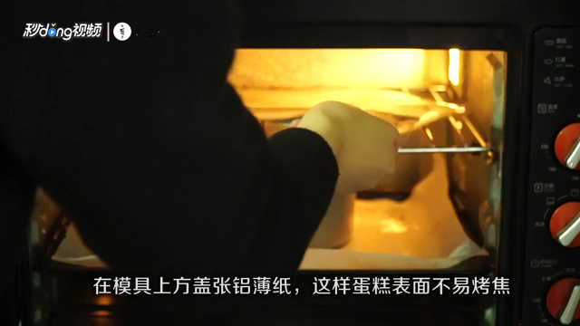 [图]7/9将模具放入提前预热好的烤箱中,在模具上方盖张铝薄纸,这样蛋糕表面不易烤焦。