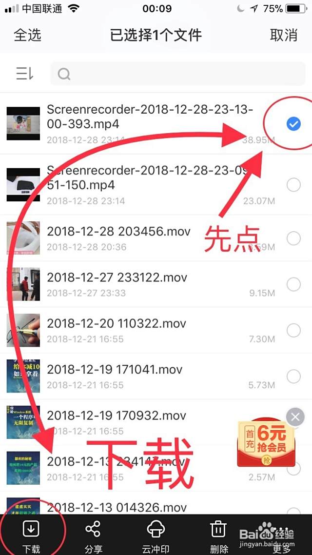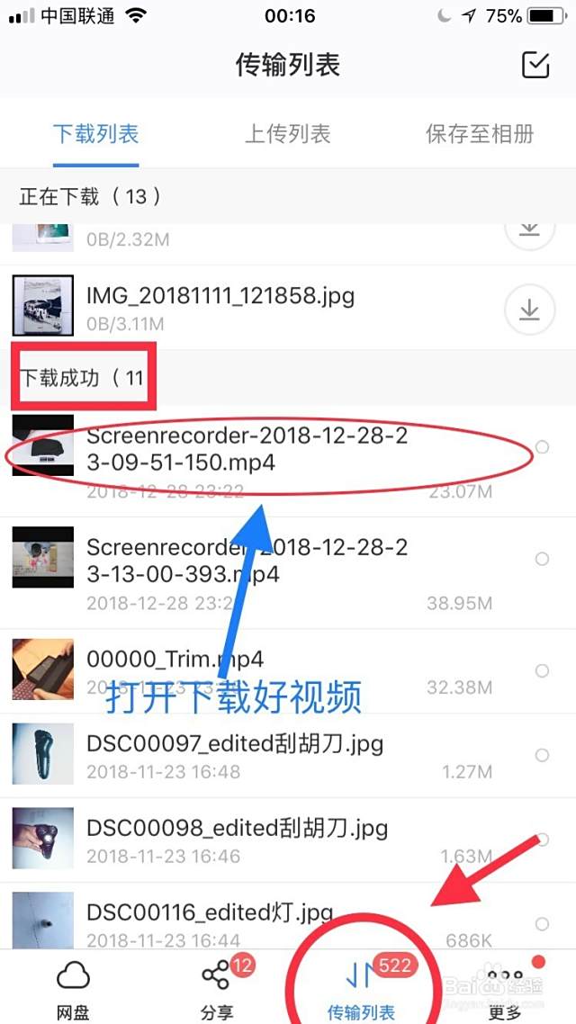 1/11分步阅读首先打开苹果手机里的百度网盘找到你要下载到手机上的视频:图1