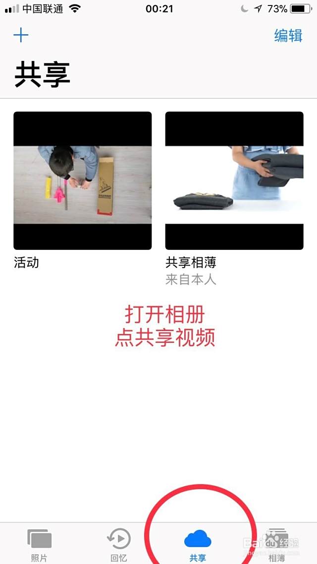 打开相册后:如果是共享了iclolud照片,点击相册中的共享视频可以找到我们的视频