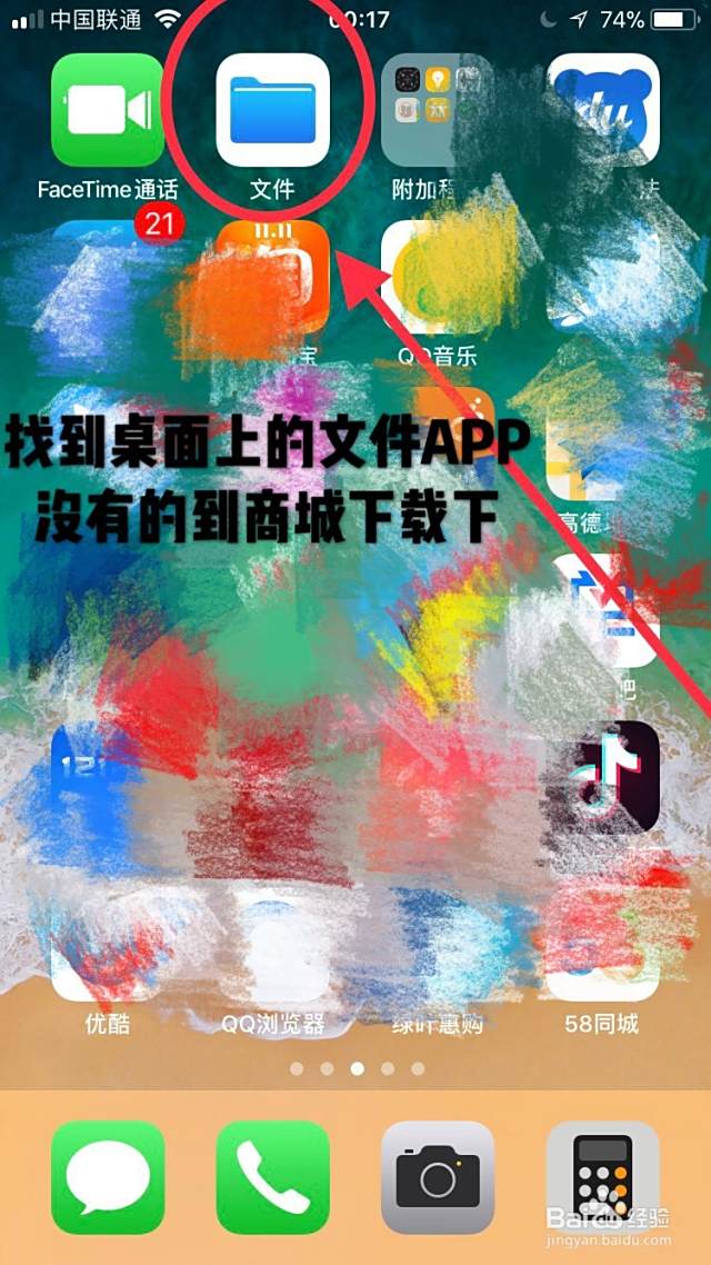 more苹果手机一部提前下载好苹果自带的文件APP工具百度网盘爱问经验方法/步骤