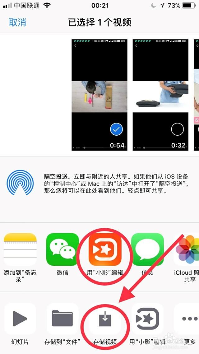 找到我们下载好的视频后 :打开后如图9所示:点击左下角的图标 点击iclolud照片共享或存储视频!又或者自带的视频编辑软件已经可以编辑了!这里我们点存储视频。