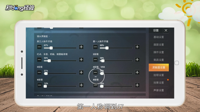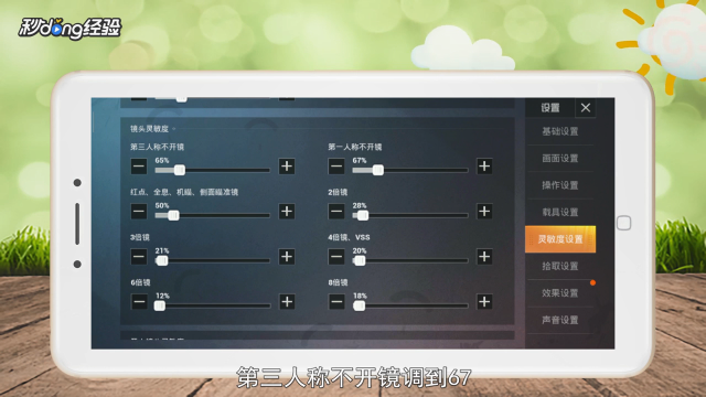[图]2/10点击“灵敏度设置”,将“第三人称不开镜”调到“67”。