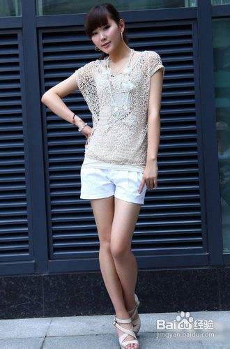 [图]3/7根据针织衫的厚薄搭配。对于很薄的针织衫,例如镂空针织衫,如果是浅色的短袖针织衫,搭配一条短小的白色短裤再好不过了,显得很利索很精神。对于较厚的针织衫,上身里面可以加一件棉质内衣,下身可穿加厚的毛袜或丝绒袜(如第二幅图)。