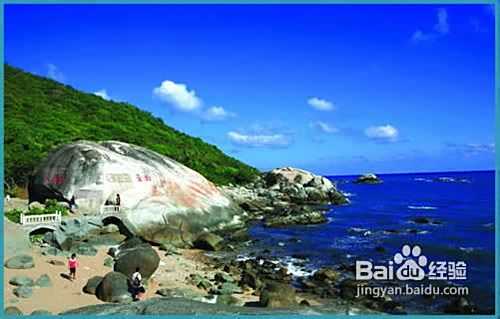 车行至三亚市区约24公里处的“天涯海角”,似乎有一种到了天地之尽头的感觉。碧水蓝天一色,烟波浩渺,帆影点点,椰林婆娑,奇石林立,那刻有“天涯”、“海角”、“南天一柱”、“海判南天”等巨石雄峙海滨,使整个景区如诗如画,美不胜收。