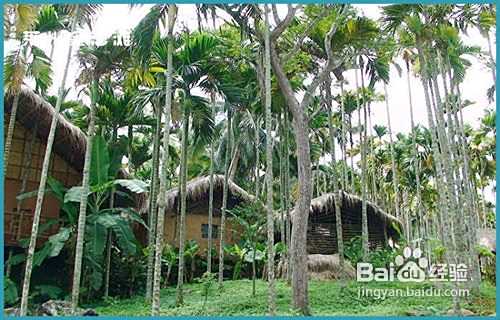 原住民黎村。它是由几百年历史的黎族村落保护而形成。在这里,可以看到全岛树岭最老的槟榔群体——百年槟榔林(区分岛上黎族和汉族最显著的标志就是椰树林和槟榔树林。汉族聚居的地方椰树林最多,黎族聚居的地方槟榔树最多。另说椰树代表男人,粗壮挺拔;槟榔树代表女人纤细高挑。);有正在消失的黎族传统建筑——船形屋;可以看到被专家喻为“敦煌壁画”活化石——黎族绣面纹的阿婆;可以看到人类在无纺时代所穿的树皮衣;可以目睹岛内仅存的百年谷仓群;可以看到中国古代最先进和与众不同的纺织工具,技术与产品——踞腰织机,“纺、染、织、绣”工艺和黎锦;可以看到全岛唯一的明代特大龙被;还可以看到用牛角、圆木、竹子、椰壳等制作的黎族古乐器;此外,还有钻木取火、低温温制陶,黎族民歌等一系列国家非物质文化遗产保护项目。作为游客,还可以在这里跳一把竹竿舞、尝一下山栏酒、竹筒饭。