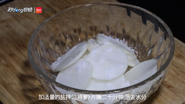 [图]3/9加适量的盐拌匀,将萝卜腌二十分钟,沥去水分。