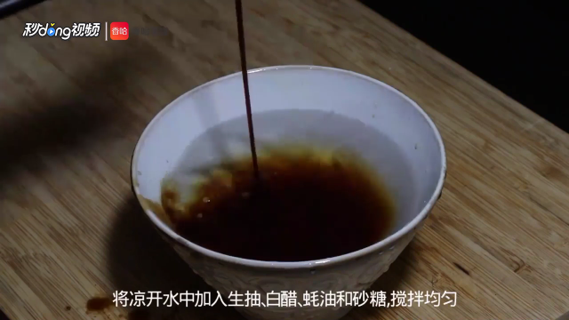 [图]5/9将凉开水中加入生抽,白醋,蚝油和砂糖,搅拌均匀。