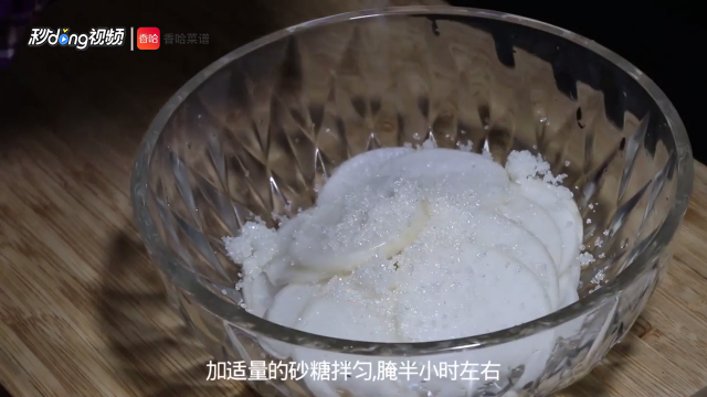 [图]4/9加适量的砂糖拌匀,腌半小时左右。