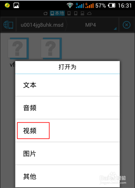 轻轻点击视频文件,在弹出的板面选择打开为【视频】