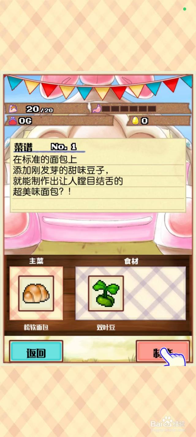[图]4/10在主菜中选择松软面包,食材中选择双叶豆后点击制造按钮。