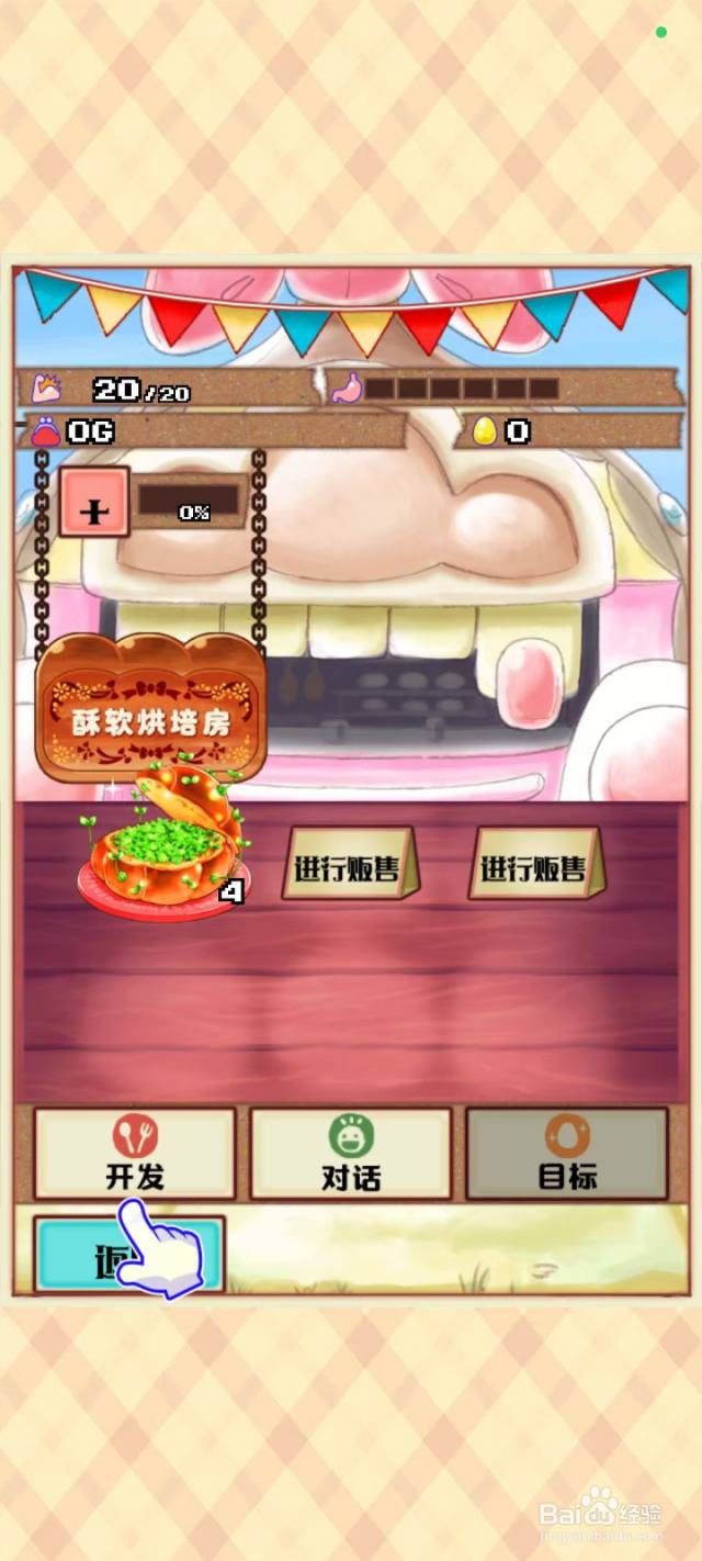 6/10在试吃剧情过后,可在餐车内点击“进行贩售”的牌子上架刚才制作的松软双叶面包。之后点击返回。