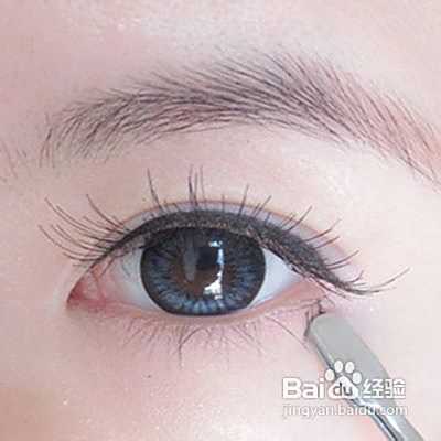 裸妆步骤九:使用纤长的假睫毛分别在上下睫毛根部粘贴好,一定要沿着自己的眼型粘贴才能自然哦。