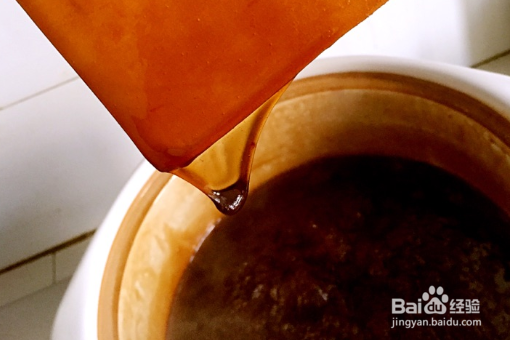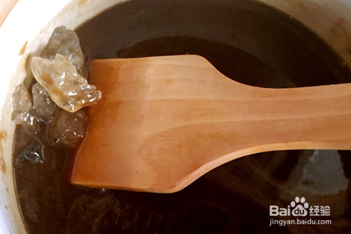 [图]5/14煮开以后一次性把冰糖都放进去袭倘,调成小火慢慢熬阿胶,它会越来越浓稠,期间拿勺子搅拌,据个人经验,三十分钟左右就会开始熬到挂旗了。